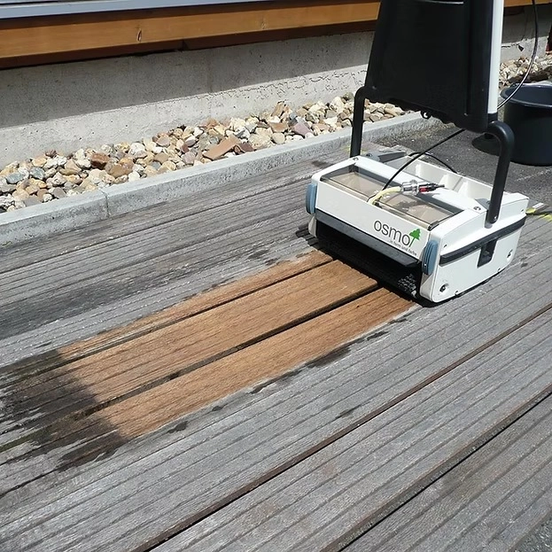 For machine processing on decking, we recommend using the Osmo Wood Orbiter.